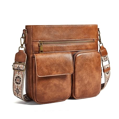 • Yarnic Crossbody Bags for Women, Multi Pockets Crossbody Purses, Vegan Leather Shoulder Handbags with Wide Adjustable Strap, Chestnut Brown, Crossbody Handbag