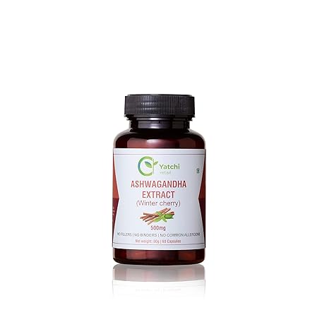 Yatchi Retail Ashwagandha Extract Capsules Vegan & Herbal Winter Cherry Supplements Antioxidant-Rich Dietary Supplements for Health Rejuvenation, & Energy Management 60 Capsules 500mg/Serving