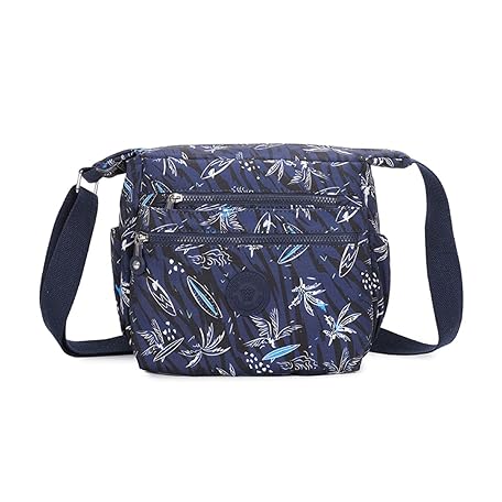 YDezire Leafy Cross body Shoulder Bags, Nylon Crossbody Bags with Adjustable Shoulder Strap, Side Pockets, Waterproof Handbags for Women, Messenger Travel Handbags (Navy Leaves)