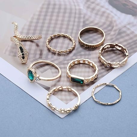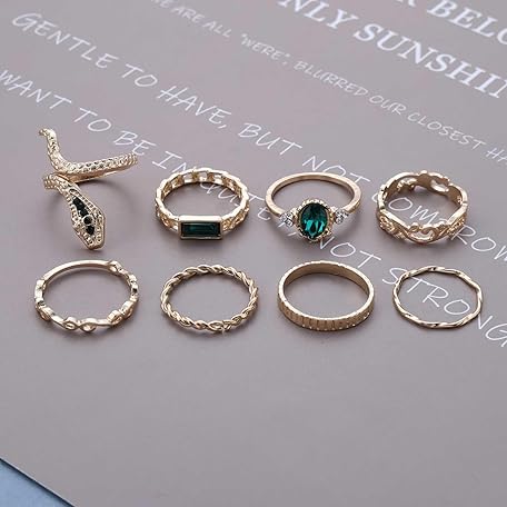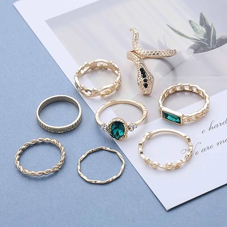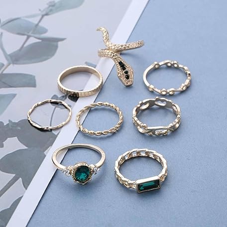 Sản phẩm Yheakne Punk Snake Wrap Ring Set Multiple Finger Rings Crystal Emerald Rings Gold Stackable Knuckle Ring Jewelry for Women 8Pcs đang được bán với giá ưu đãi là $11.8592 tại nước Anh.