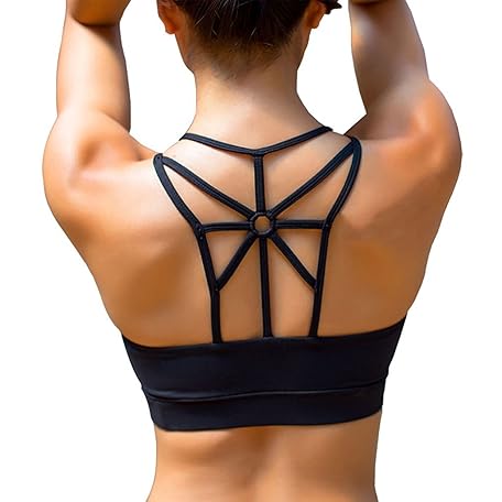 YIANNA Sports Bras for Women Cross Back Padded Sports Bra Medium Support Workout Running Yoga Bra, Black, M