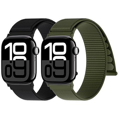 Sản phẩm Yoohoo 2 Pack Nylon Sport Loop for Apple Watch Straps 38mm 40mm 41mm 42mm 44mm 45mm 46mm 49mm Women Men - Soft and Comfortable Watch Strap for iWatch 11 10 9 8 7 6 5 4 3 2 1 SE Ultra,Black/Green đang được bán với giá ưu đãi là $8.9162 tại nước Anh.
