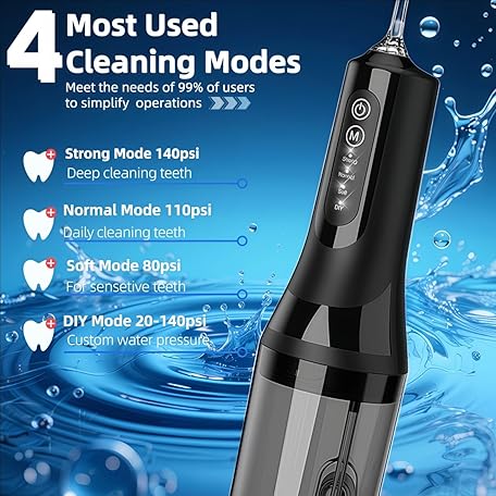 Thông tin sản phẩm Yothrill Water Flosser for Teeth Cleaning, Cordless Portable Oral Irrigator with 4 Modes & IPX7 Waterproof, Rechargeable Dental Flosser for Home Travel, Braces Care - Black