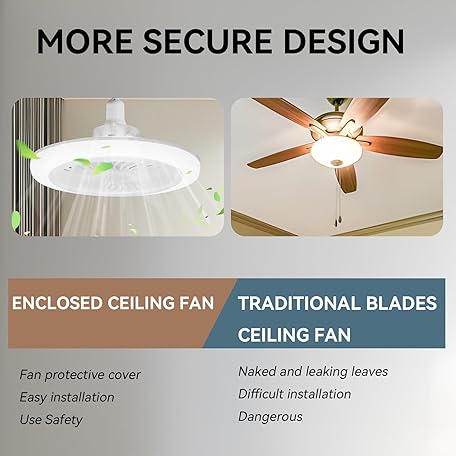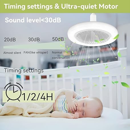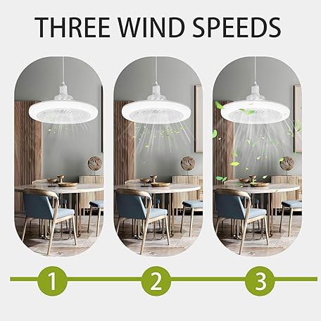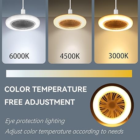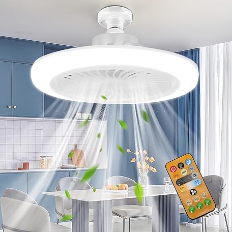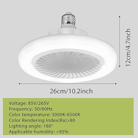 Thông tin sản phẩm YSINOBEAR LED Ceiling Fan with Remote Control, 26cm 2-in-1 Light, E27 Screw Bulb Socket, Three-Speed Mode for Bedroom