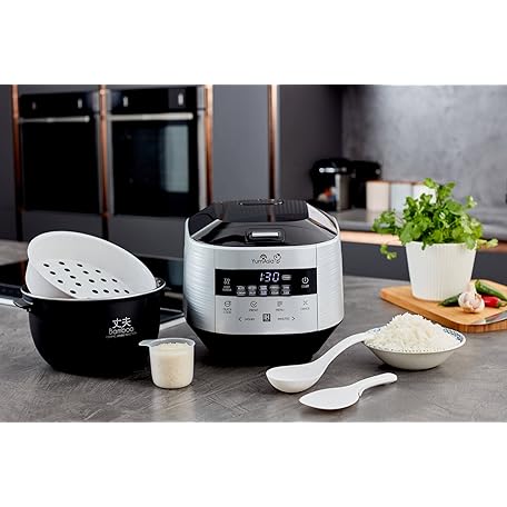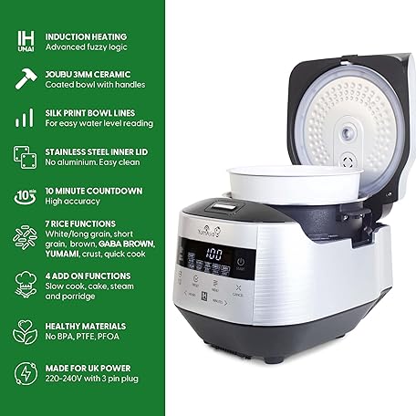Thông tin sản phẩm Yum Asia Bamboo Rice Cooker with Induction Heating (IH) and Ceramic Bowl (8 cup, 1.5 litre), 7 Rice Cooking Functions, 4 Multicooker Functions, Motouch LED Display, 220-240V