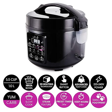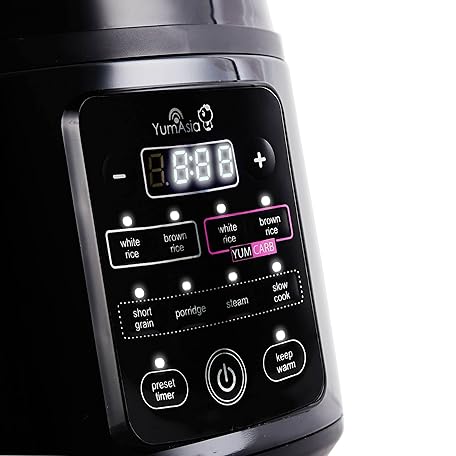 Thông tin sản phẩm Yum Asia Kumo YumCarb Rice Cooker with Ceramic Bowl and Advanced Fuzzy Logic, (5.5 cup, 1 litre), 5 Rice Cooking Functions, 3 Multicooker Functions, 220-240V UK/EU Power (Dark Stainless Steel)