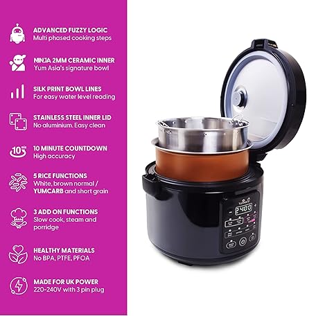 Thương hiệu Yum Asia là cái tên nổi tiếng được rất nhiều khách hàng trên thế giới chọn lựa. Với kiểu dáng đẹp mắt, sang trọng, sản phẩm Yum Asia Kumo YumCarb Rice Cooker with Ceramic Bowl and Advanced Fuzzy Logic, (5.5 cup, 1 litre), 5 Rice Cooking Functions, 3 Multicooker Functions, 220-240V UK/EU Power (Dark Stainless Steel) là sự lựa chọn hoàn hảo nếu bạn đang tìm mua một món cho riêng mình.