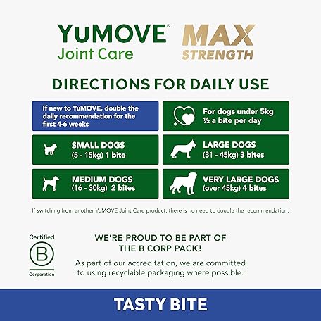 Thông tin sản phẩm YuMOVE Max Strength Joint Supplement for Senior Dogs, Essential Dog Hip and Joint Aid for Senior Dogs with Glucosamine, Chondroitin, Green Lipped Mussel, Aged 8+, 60 Chews