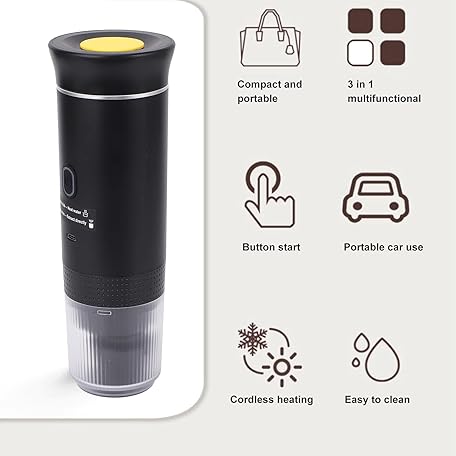 Thông tin sản phẩm Yunir Portable Electric Coffee Machine, Self Heating Travel Coffee Maker with Capsule Design, 15 Bar Pressure, Material, Coffee Maker for Travel Office Car