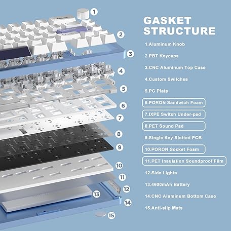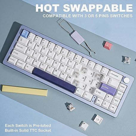Thương hiệu YUNZII là cái tên nổi tiếng được rất nhiều khách hàng trên thế giới chọn lựa. Với kiểu dáng đẹp mắt, sang trọng, sản phẩm YUNZII AL66 Wireless Mechanical Keyboard,65% Knob Control Aluminum Gaming Keyboard Bluetooth/2.4G/Wired Hot Swappable Pre-lubed Switches,Gasket Mounted RGB Keyboard for Win/Mac(Milk Switch, Blue) là sự lựa chọn hoàn hảo nếu bạn đang tìm mua một món cho riêng mình.