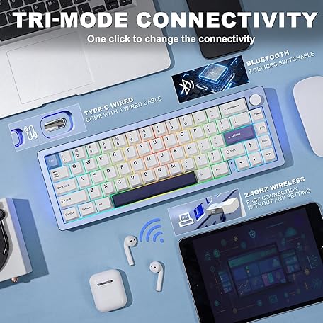 Thông tin sản phẩm YUNZII AL66 Wireless Mechanical Keyboard,65% Knob Control Aluminum Gaming Keyboard Bluetooth/2.4G/Wired Hot Swappable Pre-lubed Switches,Gasket Mounted RGB Keyboard for Win/Mac(Milk Switch, Blue)