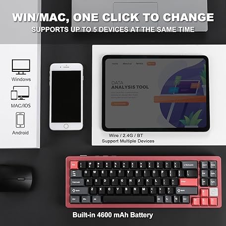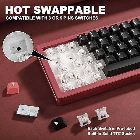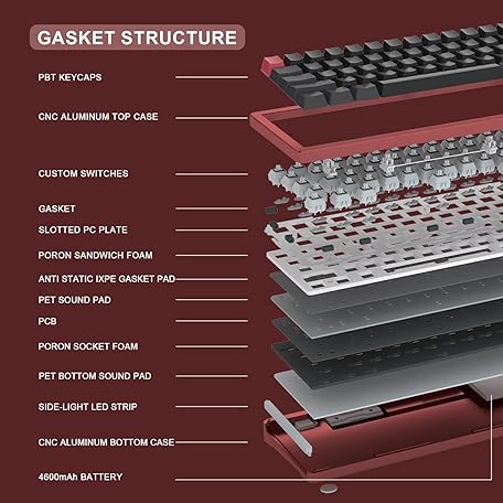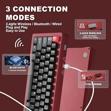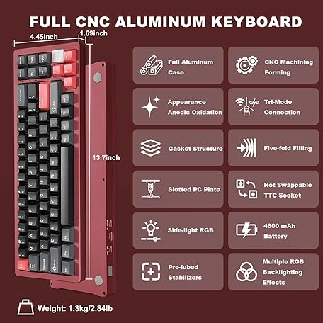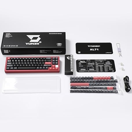 Thông tin sản phẩm YUNZII AL71 68% Mechanical Keyboard, Full Aluminum CNC, Hot Swappable Gasket,2.4GHz Wireless BT5.0/USB-C Wired Gaming Keyboard,NKRO Programmable RGB Backlight,for Win/Mac(Red,Crystal White Switch)