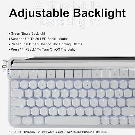 Thông tin sản phẩm YUNZII B703 Retro Typewriter Mechanical Keyboard, 75% LED Hot-Swap Mechanical Clicky Keyboard with Cute Round Key Caps for Win,Mac,iPad (Outemu Red Switch, White)
