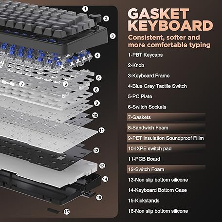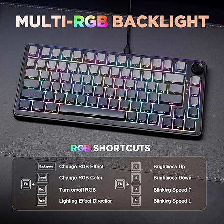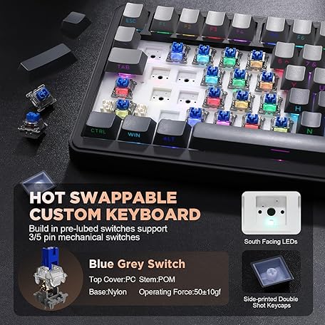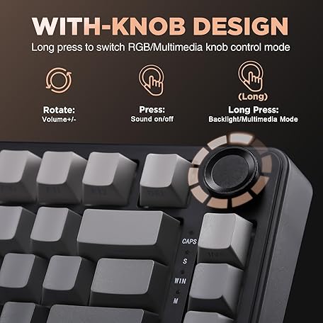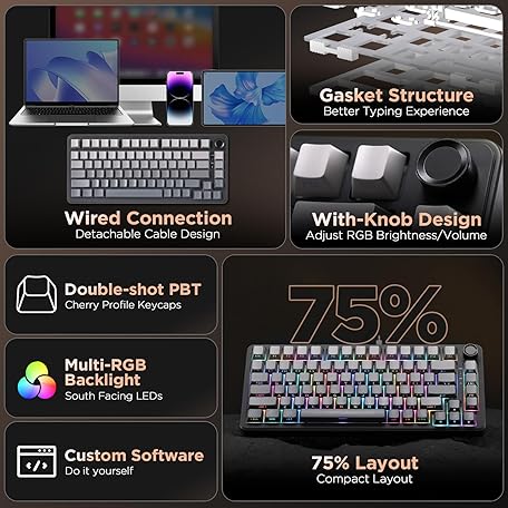 Thông tin sản phẩm YUNZII B75 Mechanical Keyboard, 75% Hot Swappable Keyboard with Knob, RGB Backlit Gasket Gaming Keyboard with Double-Shot PBT Keycaps, Cherry Profile, for WIN/MAC (gradient black, blue grey tactile)