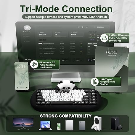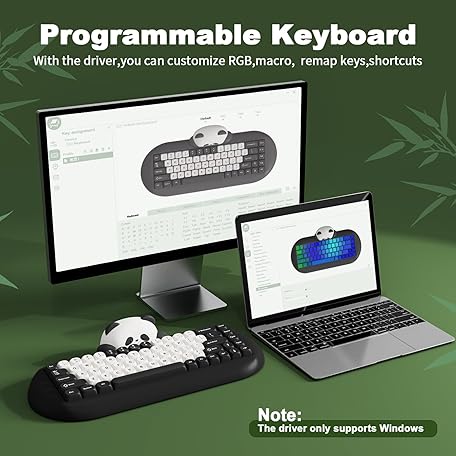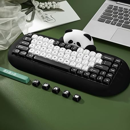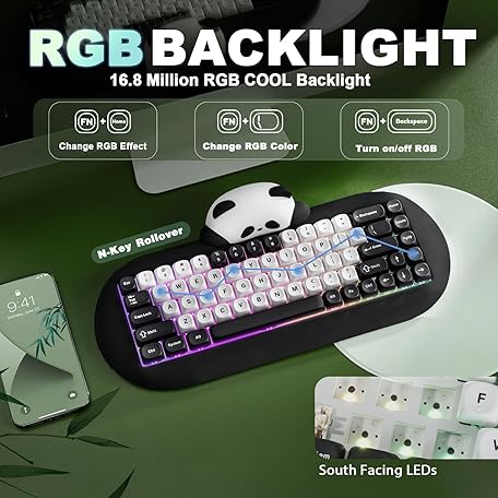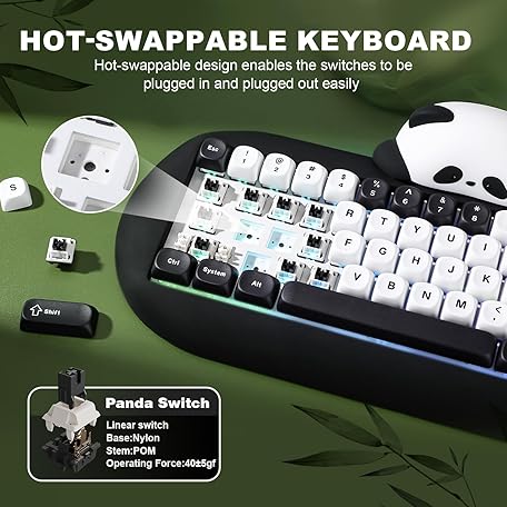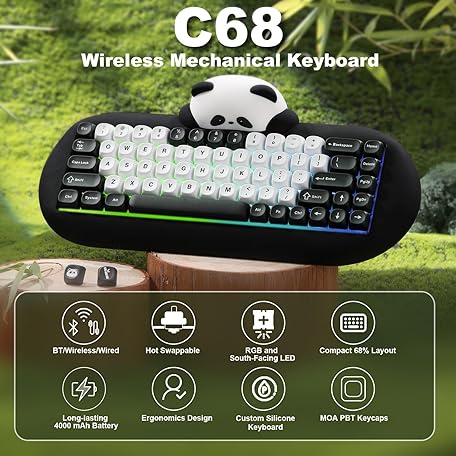 YUNZII C68 Panda Wireless Mechanical Gaming Keyboard, 68 Keys Cute Layout with PBT Keycaps,RGB Backlit, Hot Swappable,Creamy Switches,BT5.0/2.4G/Wired for Win/Mac(Black,Panda Switch)