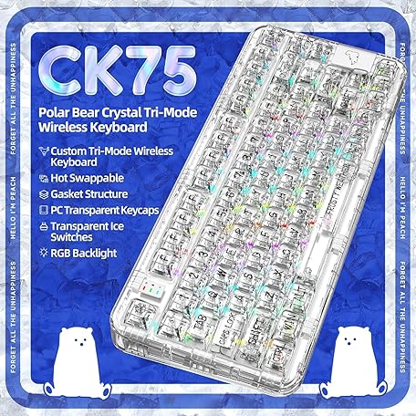 Thông tin sản phẩm YUNZII CK75 Gaming Keyboard, Wireless Hot Swappable Mechanical Keyboard for Gaming, Home, Transparent Gasket Mounted Keyboard for Windows, Mac(Ice Blade Switch,White and Metal Box)
