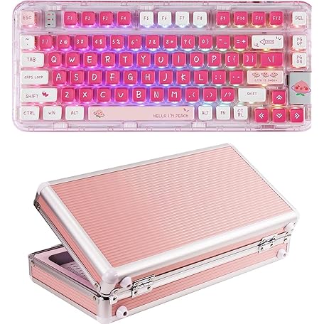 Thông tin sản phẩm YUNZII CK75 Gaming Keyboard, Wireless Hot Swappable Mechanical Keyboard for Gaming, Home, Transparent Gasket Mounted Keyboard for Windows, Mac(Meow Switch,Peach Pink and Metal Box)