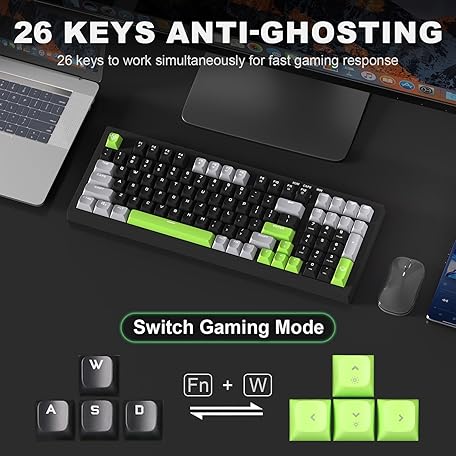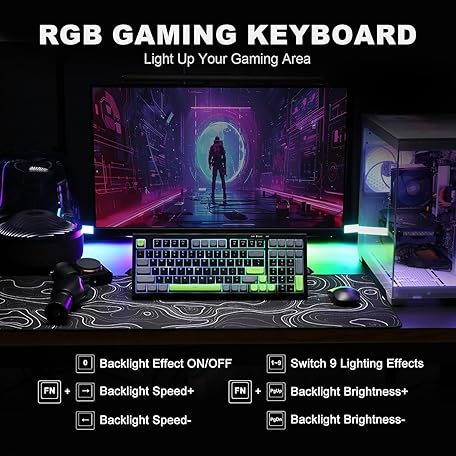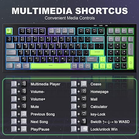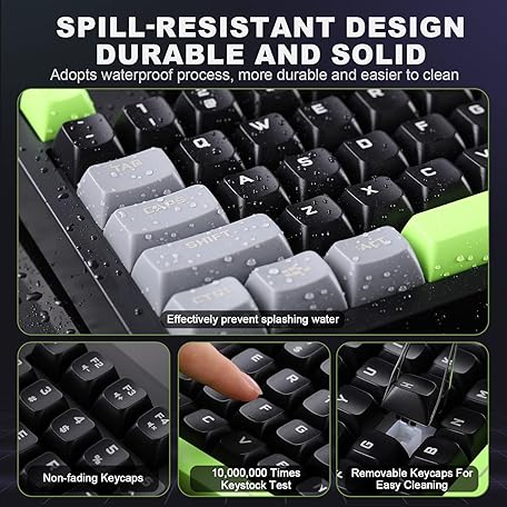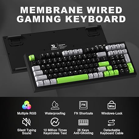Thông tin sản phẩm YUNZII D98 Wired Gaming Keyboard w/ RGB Backlight & Quiet MMP Keys, Full Numpad, Spill-Resistant, Anti-Ghosting, 98 Keys (Black & Green)