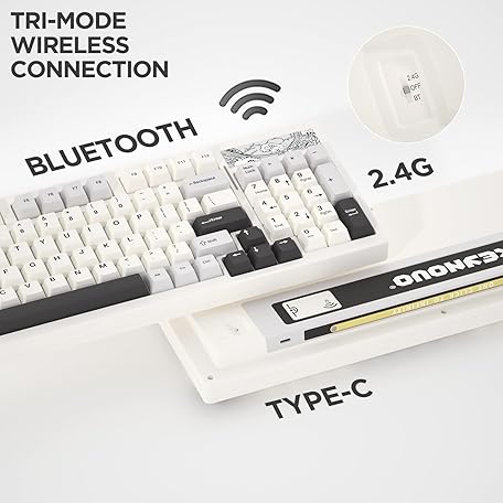 Thông tin sản phẩm YUNZII Keynovo IF98 Pro Tri-Mode Wireless Bluetooth Hot Swappable Gasket Mechanical Gaming Keyboard 98 Key 96% 1800 Layout RGB Backlight for Mac & Win (Custom Linear Switch, Wireless White)