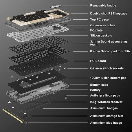Thông tin sản phẩm YUNZII Keynovo IF98 Pro Tri-Mode Wireless Bluetooth Hot Swappable Gasket Mechanical Gaming Keyboard 98 Key 96% 1800 Layout RGB Backlight for Mac & Win (Gateron G Pro Black, Wireless Black)