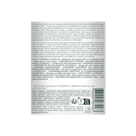 Thông tin sản phẩm Yves Rocher Plant Care Body Repair Milk for Very Dry Skin, Repairs Very Dry Skin and Build It, 1 x Pump Bottle 390 ml