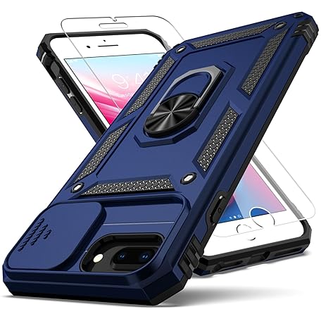 YZOK for iPhone 8 Plus Case,iPhone 7 Plus Case,iPhone 6 Plus Case,with Slide Camera Cover+ HD Screen Protector,Rotated Ring Kickstand Military Grade Shockproof Protective Cover-Blue