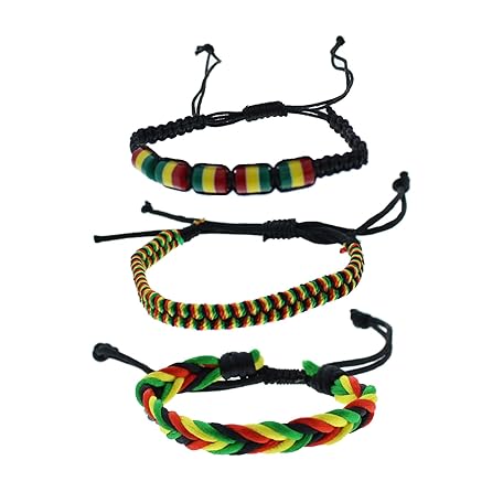 Zac's Alter Ego Set of 3 Rasta Braided Bracelets - Friendship Bracelets Reggae Colours of the Caribbean - Adjustable Wristband Bob Marley