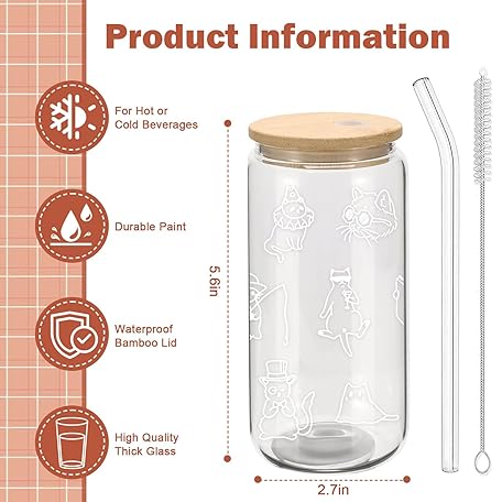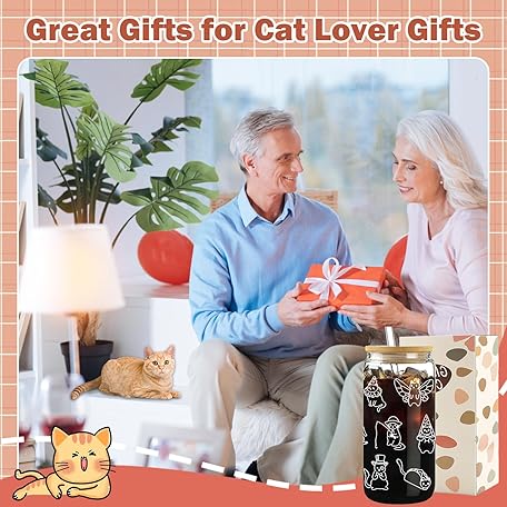 Thông tin sản phẩm Zeauuiv Cat Gifts for Women, Cute Cats Cup with Lid and Straw, 16oz Glass Iced Coffee Tumbler, Cats Lover Gifts, Cat-Themed Presents for Women, Bestie Birthday, Christmas, Sister, Mom