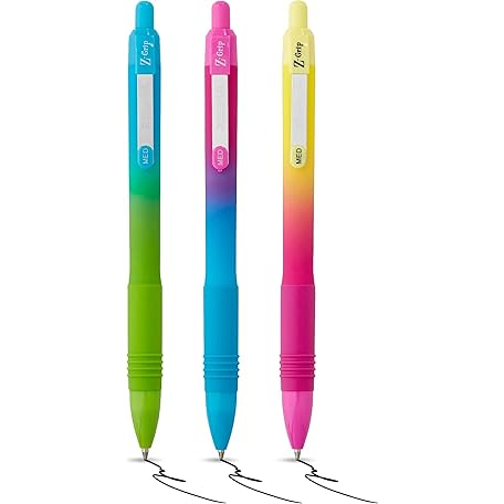 Zebra Pen Z-GRIP Soft Touch Black Ink Ballpoint Pens 3pk - 1.0mm Medium Point Retractable Pens with Clip, Smooth Writing Pens with Comfort Grip - 3 Pens Multipack (Ombre Barrel)
