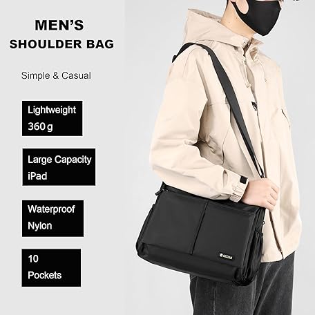Sản phẩm zhongningyifeng Men's Shoulder Bag Messenger Bag Nylon Waterproof Lightweight Casual Black Crossbody Bag for Work Travel Outdoor đang được bán với giá ưu đãi là $32.3294 tại nước Anh.
