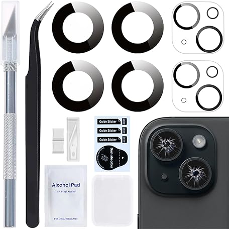 ZHUROUPU for iPhone 15/15 Plus Rear Back Camera Lens Glass Replacement with Pre-Installed Adhesive, Sapphire Glass Lens for iPhone 15 6.1 inch/15 Plus 6.7 inch with Professional Repair Tools (2 Set)