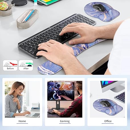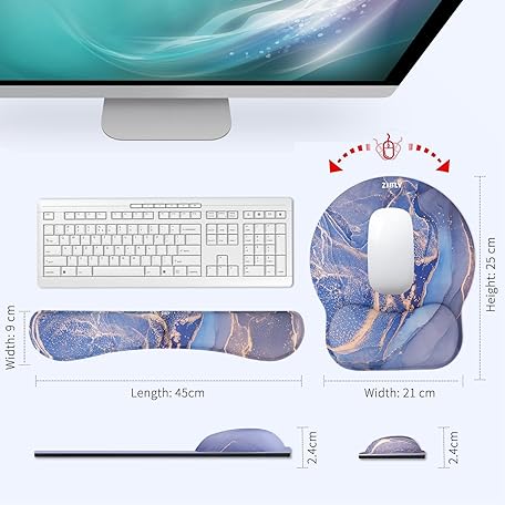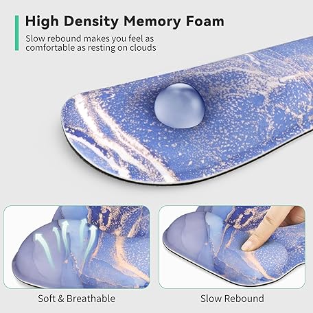 Thông tin sản phẩm Zibly Keyboard Wrist Rest and Mouse mat Wrist Support, Comfortable Memory Foam Mouse pad Wrist Support Cushion with Anti-Slip Grip for Office Computer Laptop Working Gaming (Combo Blue Marble)