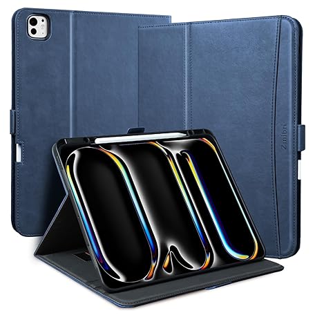 • Zinibri for iPad Pro 13 Inch Case 2024 M4 A2925 A2926 with Pencil Holder & Pocket & Hand Strap, Stand Magnetic Cover PU Leather Case Compatible with iPad Pro 13 M4 2024 (7th Gen),Blue
