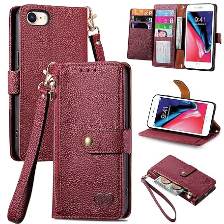Sản phẩm Zipper Wallet Case for Apple iPhone SE 2020 / SE 2022 5G / iPhone 7 / iPhone 8 Phone Case with Purse Card Holders RFID Blocking Leather Flip Case Book Cover Wrist Strap Women - Red đang được bán với giá ưu đãi là 0 tại nước Anh.