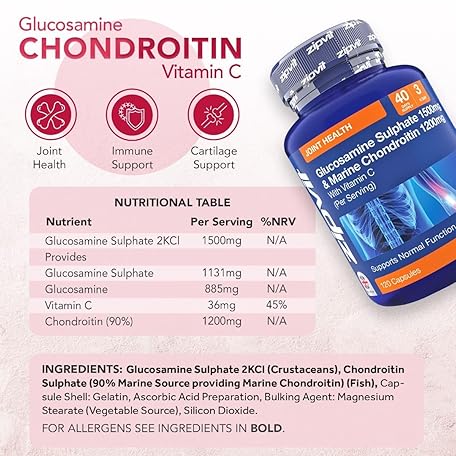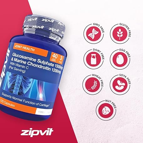 Thông tin sản phẩm Zipvit Glucosamine and Chondroitin High Strength with Glucosamine Sulphate 1500mg, Marine Chondroitin 1200mg and Vitamin C, Joint Care Supplements for Men and Women, 120 Capsules