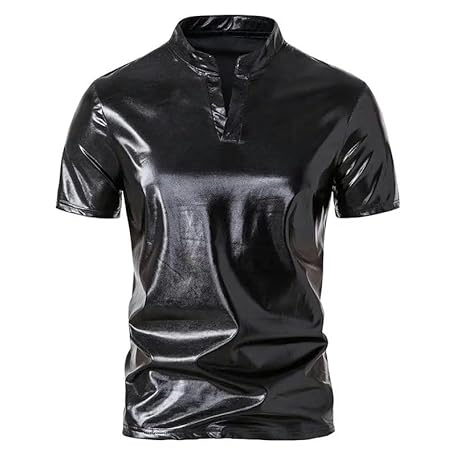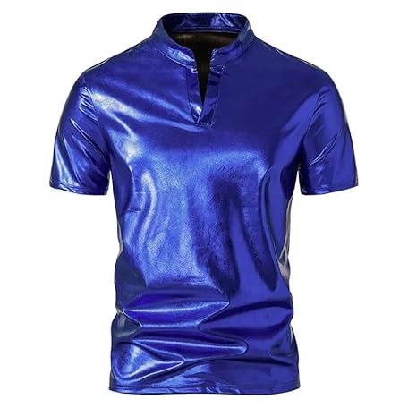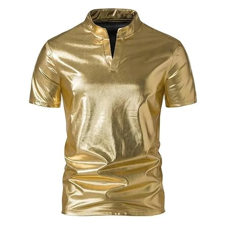 Sản phẩm ZMIN Man Nightclub T Shirts Men Glossy Gold Short Sleeve Shirt Henry Collar Disco Party Club Stage Costume đang được bán với giá ưu đãi là $57.6828 tại nước Anh.