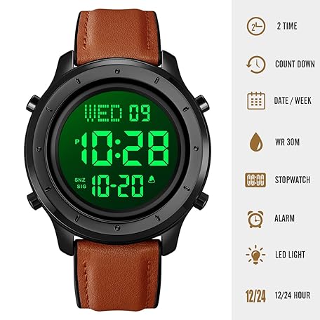 Sản phẩm zolohoni Mens Leather Watch for Men Digital Watch Men's Wrist Watches LED Minimalist Stainless Steel Waterproof Stopwatch đang được bán với giá ưu đãi là $31.4901 tại nước Anh.