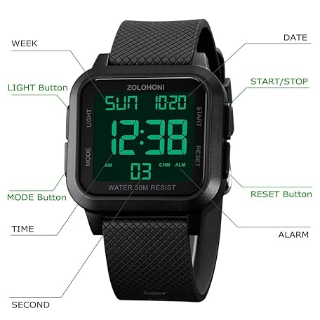 Thương hiệu zolohoni là cái tên nổi tiếng được rất nhiều khách hàng trên thế giới chọn lựa. Với kiểu dáng đẹp mắt, sang trọng, sản phẩm zolohoni Square Men's Digital Watch Big Numbers Dial Large Face Waterproof LED Watches with Alarm Date Stopwatch  là sự lựa chọn hoàn hảo nếu bạn đang tìm mua một món  cho riêng mình.