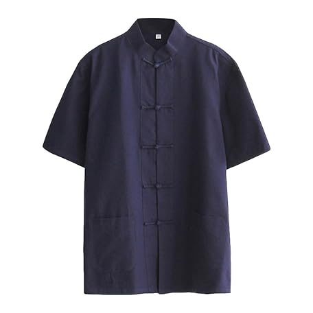 • ZooBoo 100% Cotton Short Sleeve Kung Fu Shirt – Traditional Chinese Martial Arts Top for Men & Women, Navy Blue, XXL