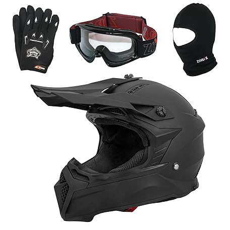 Sản phẩm Zorax ZOR-X309 Matt Black L (59-60cm) Motocross Motorbike Helmet Dirt Bike Helmet & Gloves L(10cm) & Goggles & Balaclava đang được bán với giá ưu đãi là $88.9549 tại nước Anh.