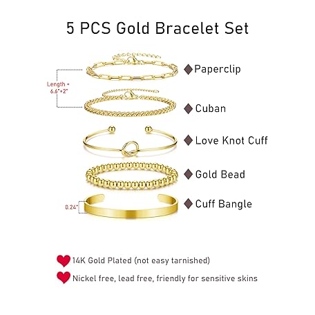 Sản phẩm Zysta 14K Gold Bracelet Sets for Women Ladies Layered Dainty Link Chain Bangle Cuff Bracelets Gold Jewellery Gifts for Mother's Day Valentine's Day Wedding Birthday đang được bán với giá ưu đãi là $14.1918 tại nước Anh.