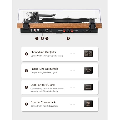 Thông tin sản phẩm 1 by ONE Bluetooth Turntable HiFi System with 36 Watt Bookshelf Speakers, Patend Designed Vinyl Record Player with Magnetic Cartridge, Bluetooth Playback and Auto Off