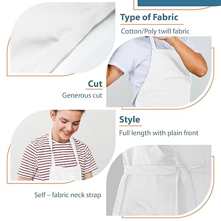 Thông tin sản phẩm 1 Pack Chef Apron without Pockets with a Chef Bandana, Cotton/Poly, Multi-Purpose Kitchen Aprons for Women and Men