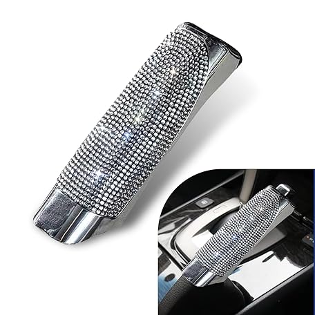 1 PC Bling Car Handbrake Grip Decorative Cover, 4.84" x 1.14" x 0.66" Personalized Rhinestone Shift Gear Protective Cover, Modified Accessories, Suitable for Most Car Models (White)