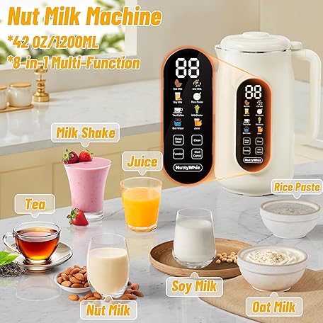 Thương hiệu NUTTYWHIZ là cái tên nổi tiếng được rất nhiều khách hàng trên thế giới chọn lựa. Với kiểu dáng đẹp mắt, sang trọng, sản phẩm 10-in-1 Nut Milk Maker Machine,10 Blade 42oz Homemade Almond, Soy, Oat, Juice, Plant-Based and Dairy Free Beverages,Automatic Almond Milk Maker, LED Panel/Delay Start/Keep Warm/Boil Water/Self Clean là sự lựa chọn hoàn hảo nếu bạn đang tìm mua một món cho riêng mình.