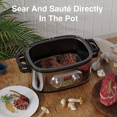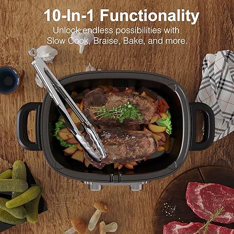 Thông tin sản phẩm 10-in-1 Programmable Slow Cooker with Timer, 6.8 Quart Crock Pot, Presets to Sous Vide, Bake, Sauté, Cook Rice& More, Nonstick Dishwasher-Safe Pot, Adjustable Temp&Time, Stainless Steel
