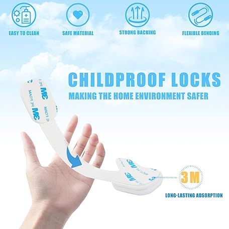 10 Pack Child Proof Cabinet Locks, Multi-Purpose 3M Adhesive Mats Baby Locks for Fridges, Ovens, Closets, Doors, Windows, Toilets, Adjustable Child Locks for Cabinets and Drawers