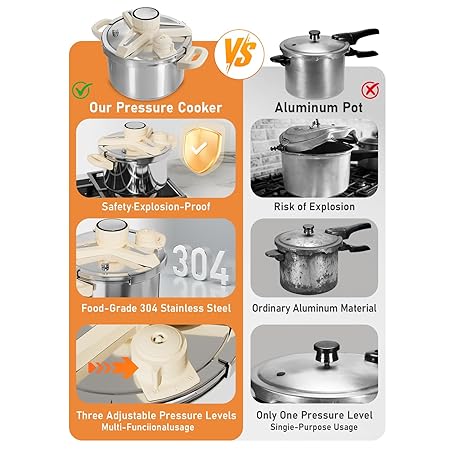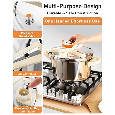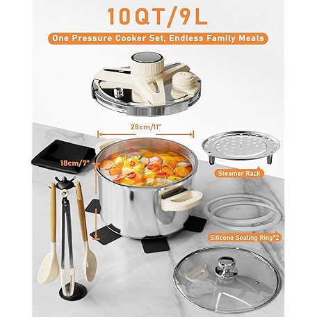 10 QT Stainless Steel Pressure Cooker, 10 pcs Olla de presion Set, Cooking Pressure Cooker with 3 PSl Settings Release Valve & Multiple Protective Devices, Compatible with Induction and Gas Stovetops