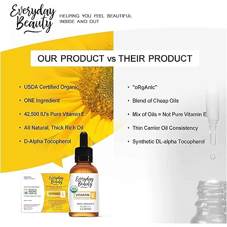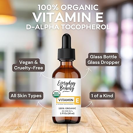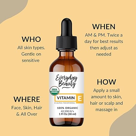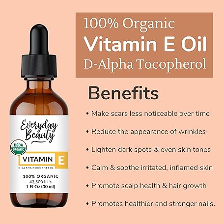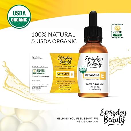 Thông tin sản phẩm 100% Organic Vitamin E Oil - D-Alpha Tocopherol USDA Certified 100% Organic - Pure and Natural 1 Fl Oz 42,500 IU - For Face, Skin and Nails - Reduce Wrinkles, Anti Aging, Lighten Dark Spots