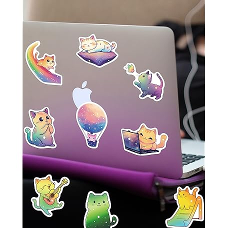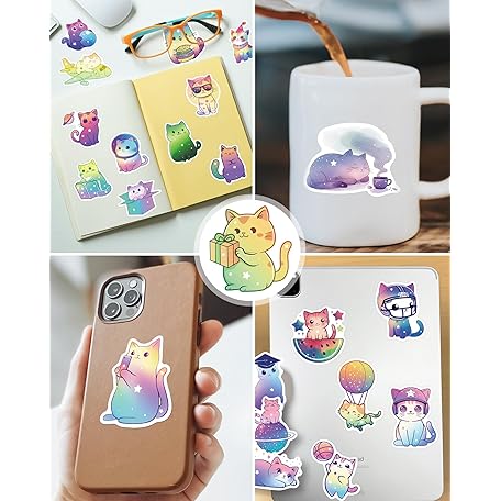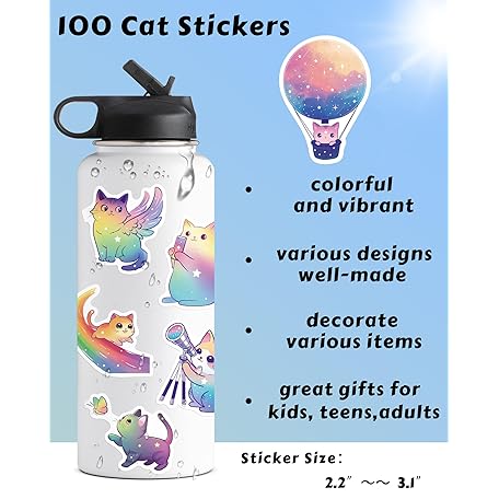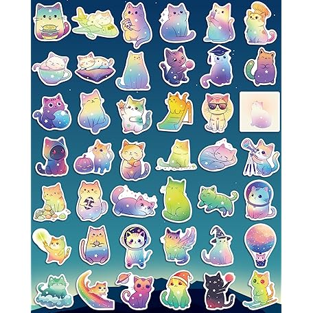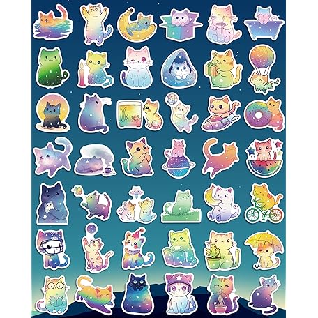 100 Pcs Cute Cat Stickers for Kids Teens, Kawaii Stickers for Girls Boys, Cat Party Favors & Decorations, Waterproof Starry Sky Cats Sticker Pack for Water Bottle Laptop Scrapbook